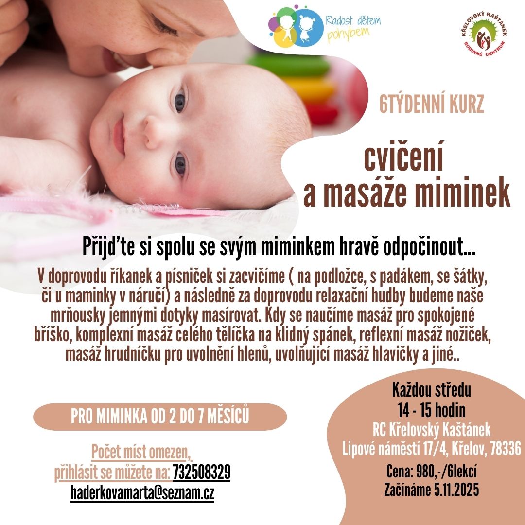 Také se už těšíte, až budete moci se svým miminkem navštěvovat společnou aktivitu?Máte doma děťátko mezi 2 - 7 měsícem? Nevíte, co podniknout v odpoledních hodinách?